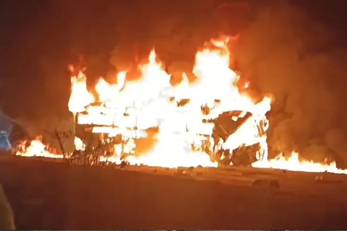 Chitradurga, Karnataka: At least nine people were burned alive after a private sleeper bus caught fire following being hit by a truck in Karnataka’s Chitradurga district. The bus was travelling from Bengaluru to Shivamogga, covering over 300 kilometers, when the accident occurred on the National Highway-48 (NH-48) in the early hours of Thursday, around 2:30 am.