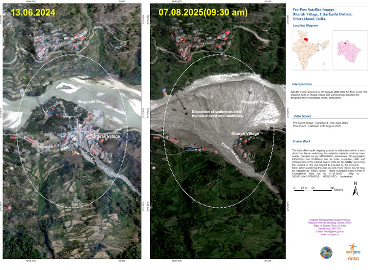 A comparative analysis between Cartosat-2S satellite data from August 7, 2025 (post-event) and cloud-free images from June 13, 2024, offers a sobering look at the aftermath and provides essential insights for ongoing relief operations.