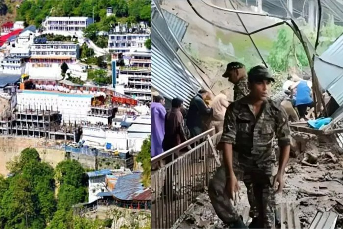 The landslide hit a protection shed at a point about halfway along the 12-km trek from Katra town to the hilltop shrine.
